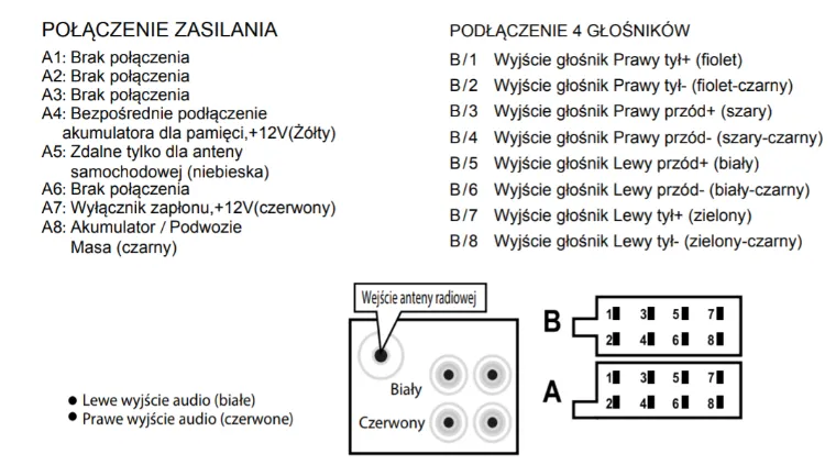 Podłączenie głośników do różnych modeli radioodtwarzaczy