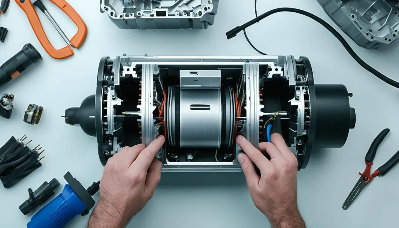 Po otwarciu obudowy, przystąp do podłączenia przewodów do silnika. Użyj odpowiednich kabli, aby połączyć silnik z prądem stałym lub zmiennym. Upewnij się, że przewody są dobrze podłączone i nie ma ryzyka ich poluzowania. Na koniec, sprawdź wszystkie połączenia, aby mieć pewność, że są one stabilne i gotowe do działania.